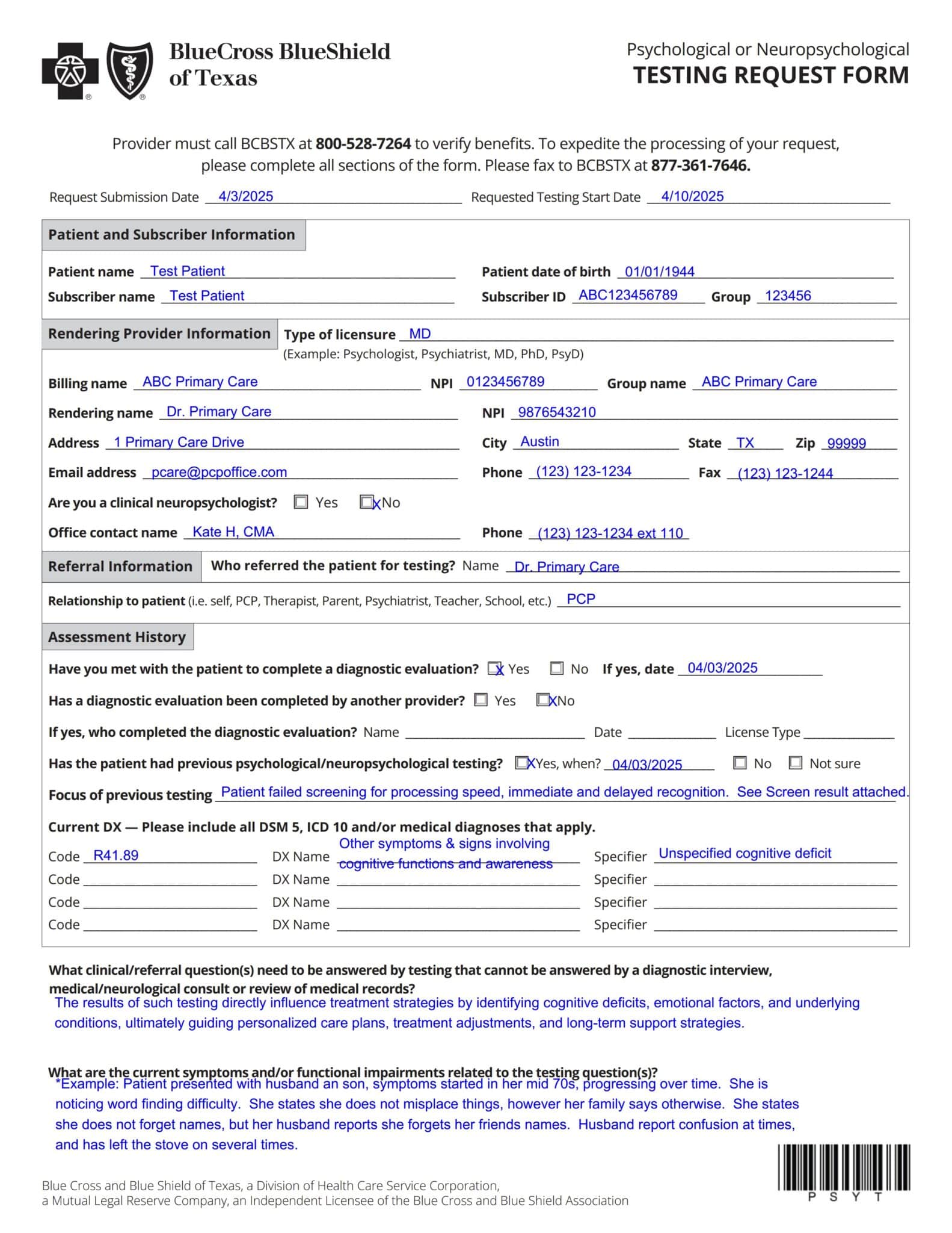 See Below for a Full Sample of Prior Authorization Request:
